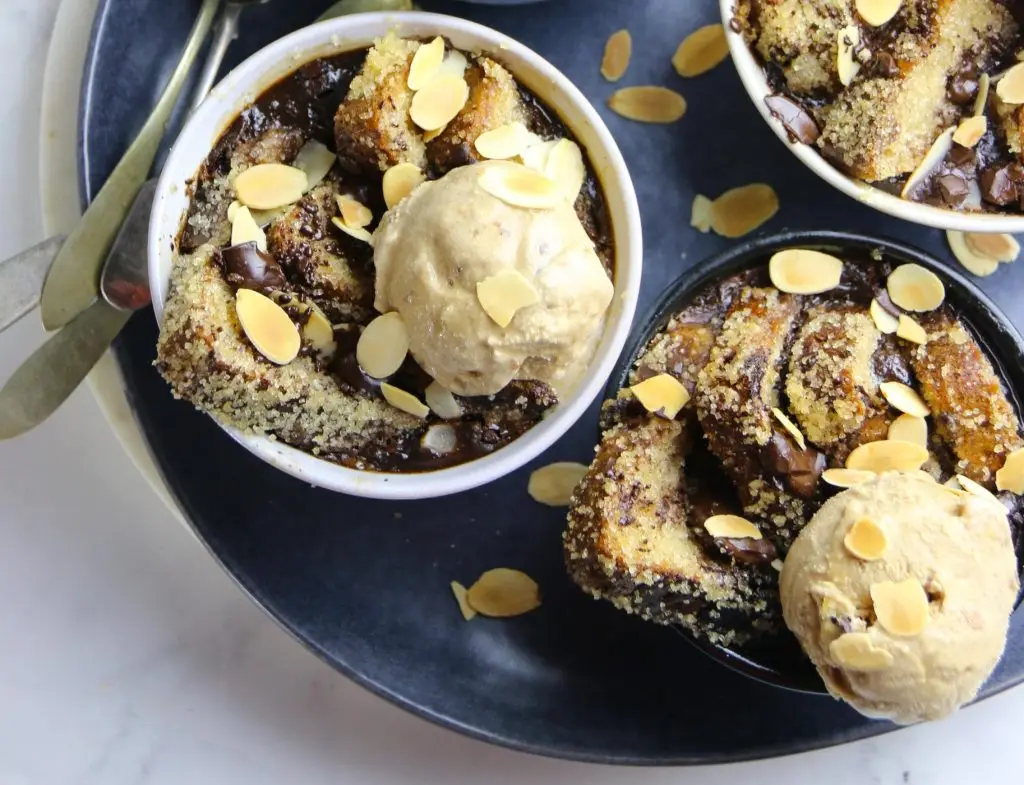 This makes a delightful dessert that combines the rich flavours of spiced fruit bread and creamy chocolate custard, perfect for those who love a combination of warm spices, sweet fruits, and velvety chocolate. Serve warm or chilled, depending on your preference. There are great certified organic dairy, chocolate and sugar options available to make up this delicious recipe.