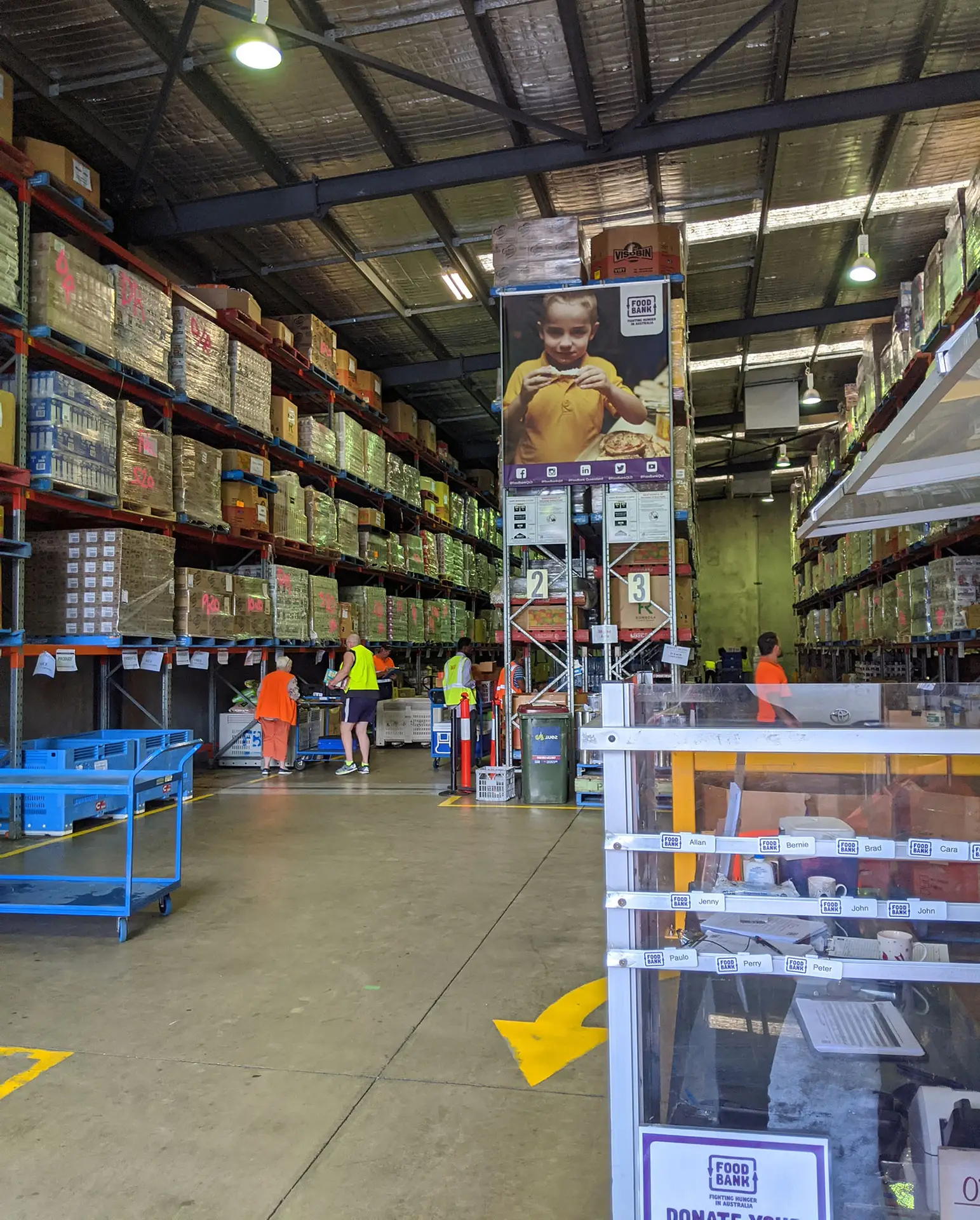Larger / more distant charities organise to collect their items from the Foodbank Queensland warehouse with their own trucks. These charities place orders with Foodbank, who then pick and pack products onto pallets in their warehouse ready for collection. Local charities visit the warehouse in person to select what they need and take donations with them.