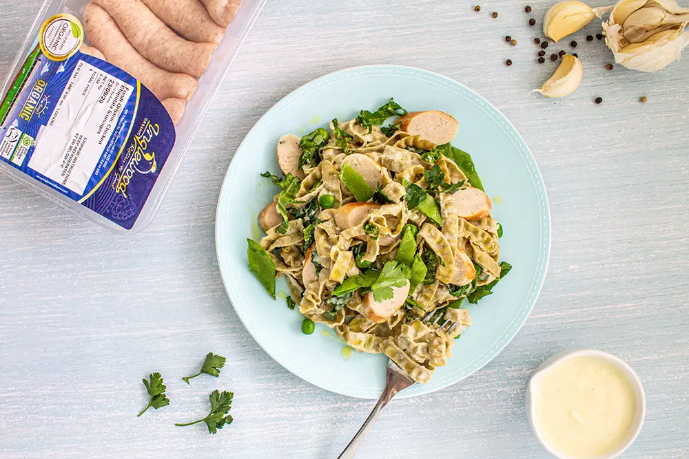 Creamy dairy free alfredo pasta with Inglewood Organic Chicken