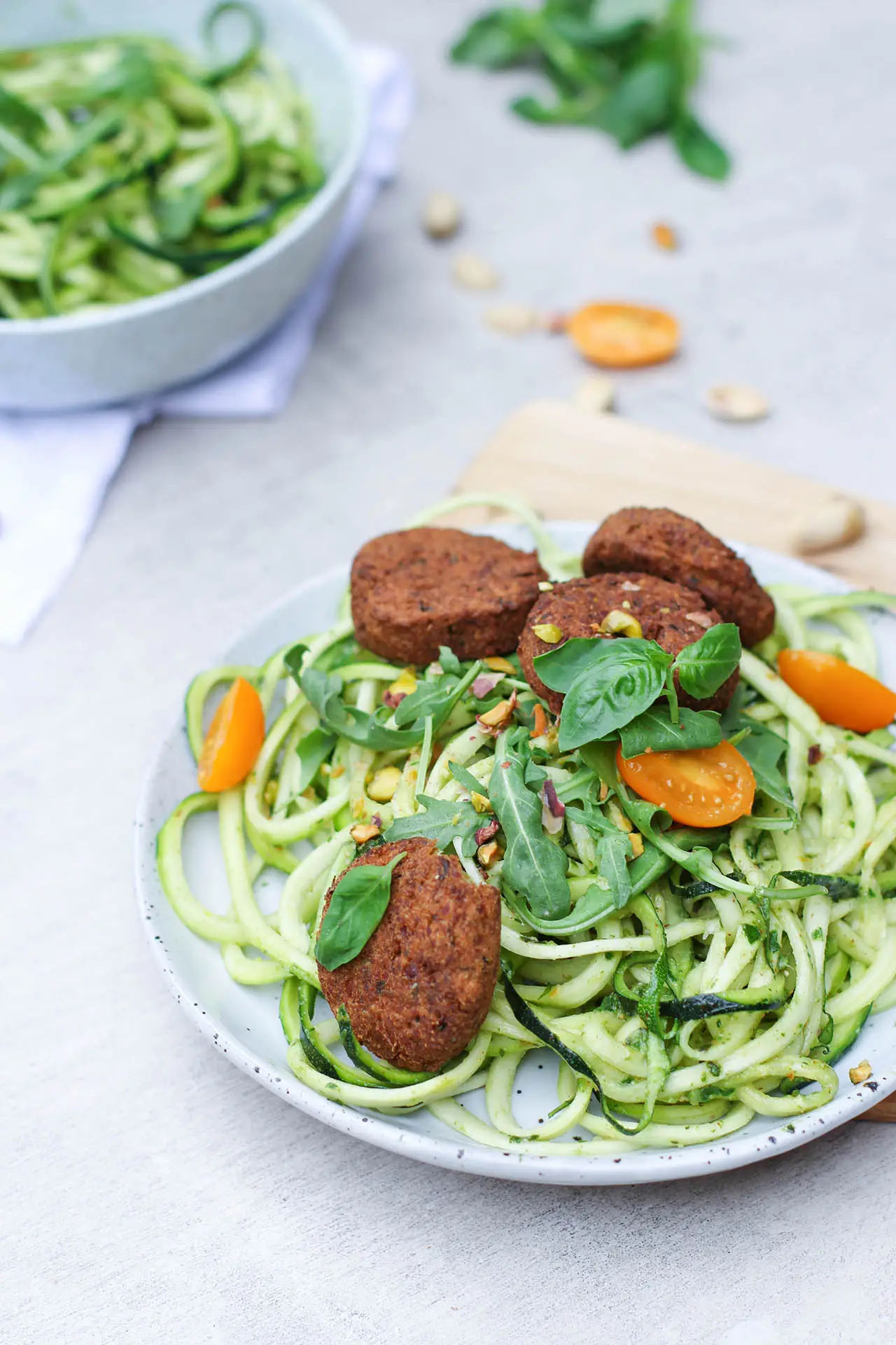 Zucchini Pesto ‘Noodles’ with Organic Falafels