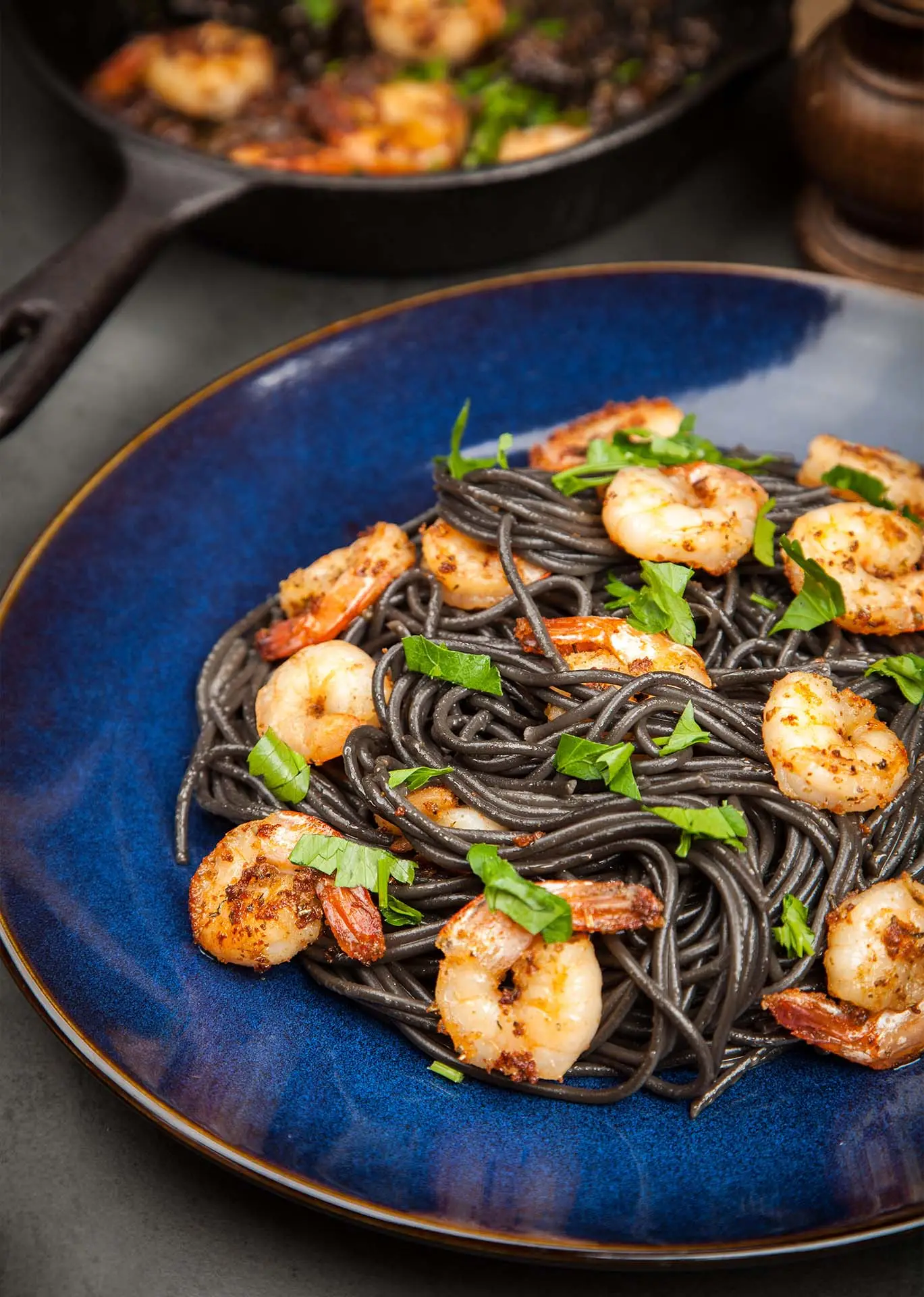 Want something quick and fresh for dinner? Try this Black Bean Spaghetti with Garlic Prawns - a twist on an..