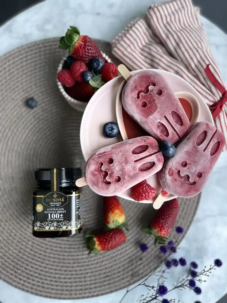 It also tastes great! The below recipe for natural berry popsicles using Manuka honey couldn’t be simpler.