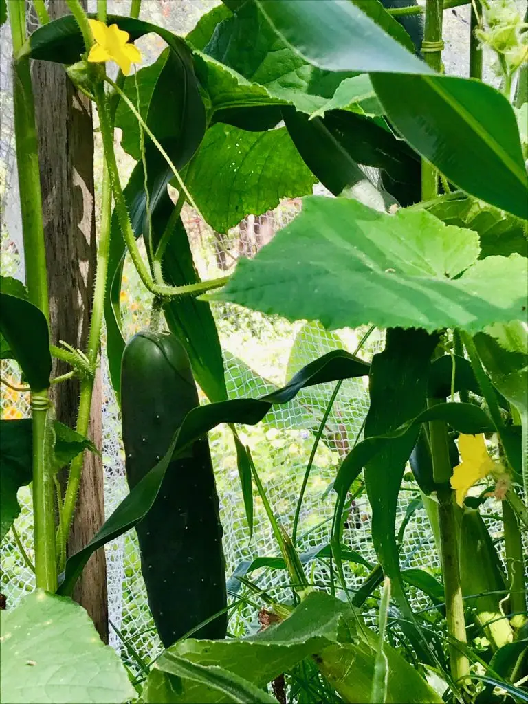 Cucumbers: Varieties include bush gherkin pickle, crystal apple, Lebanese, long green, African horned, white, Armenian … the list goes on. Cucumbers can be either grown trailing along the ground or trained up a small trellis.