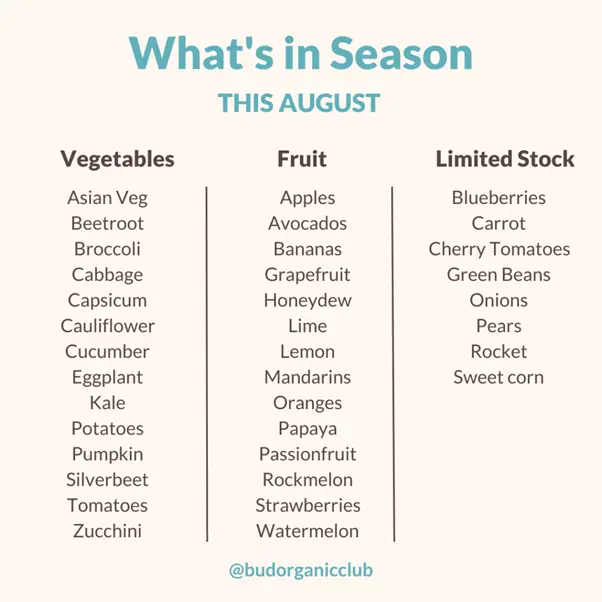 There will be plenty of citrus, such as Eureka and Meyer lemons, tangelos, Navel oranges, some Blood orange and limes. Mandarins are the hero fruit of August with good stocks of Imperials, Ellendale’s, Honey Murcott and Afourer’s. There are also plenty of grapefruits available in August, both Ruby and Yellow.