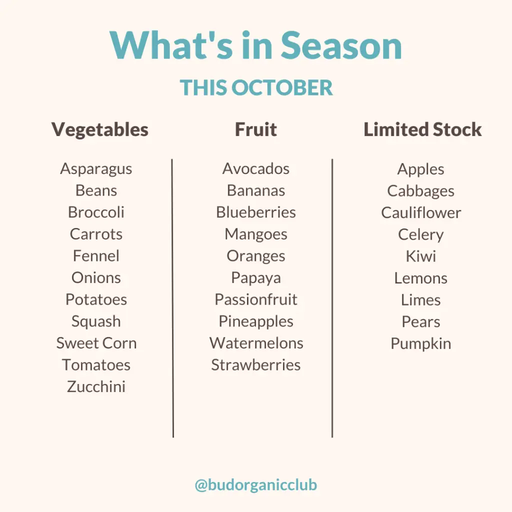 Asparagus, beans, and broccoli are all in good supply. Carrots, fennel, and onions are staples in October as well. Sweet corn, squash and zucchini are coming out of several regions, so the supply should stay steady through to Christmas. However, Jap and Kent pumpkin has shortened up